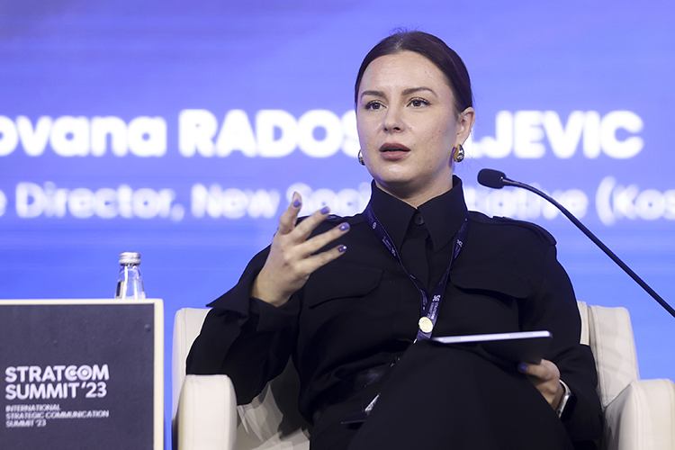 Jovana Radosavljević je izvršna direktorica NVO Nova društvena inicijativa sa sedištem u severnom delu Kosovske Mitrovice. Njena glavna polja ekspertize odnose se na dijalog Beograda i Prištine, prava zajednica, izborne procese i transformaciju sukoba. Jovana je magistrirala međunarodne studije na Školi za međunarodne studije Džozef Korbel na Univerzitetu u Denveru.Pored toga, diplomirala je međunarodnu politiku na Fakultetu političkih nauka Univerziteta u Beogradu. Srednju školu je završila u Olney Friends School u Barnesvilu, Ohajo.Jovana je rodjena 1988.godine. Iz Leposavića, a trenutno živi i radi u Kosovskoj Mitrovici. U slobodno vreme se bavi vinogradarstvom, što joj je porodični hobi. Voli prirodu, a posebno planinu, vozi snoubord.